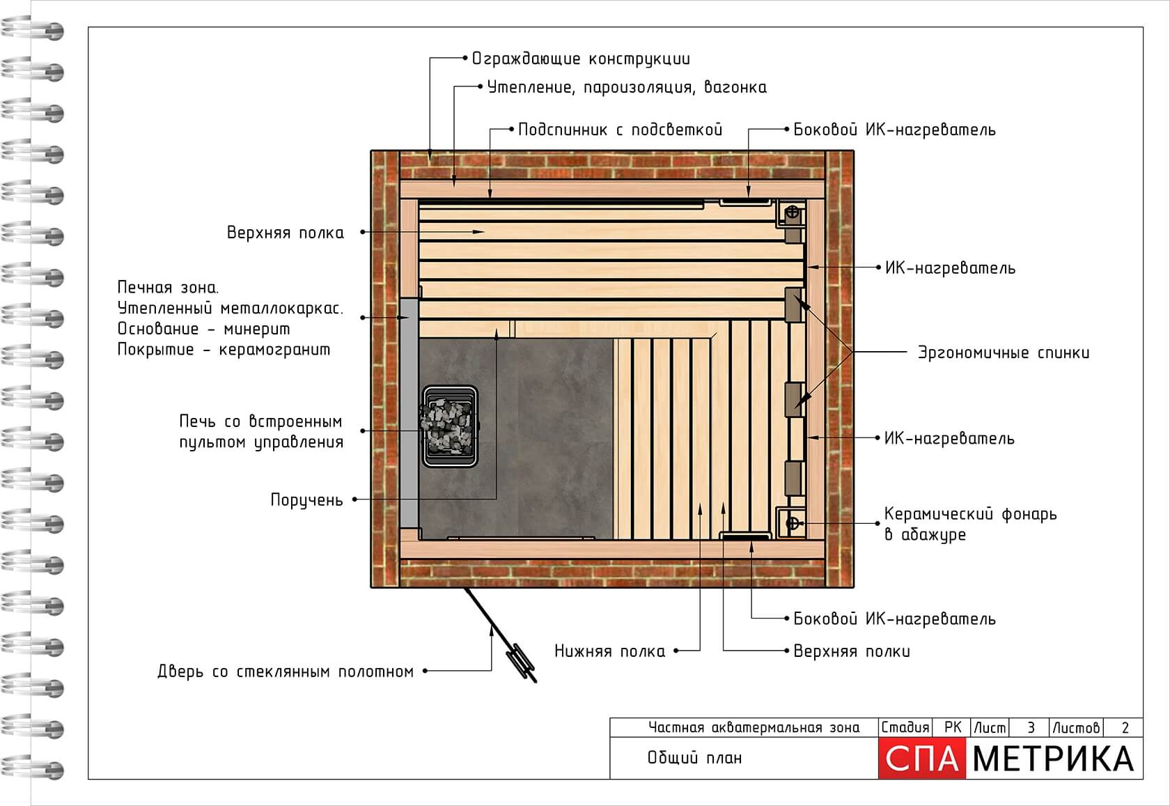- Разработка дизайн-проекта парной, расчет/монтаж оборудования для режима ИК-процедуры, работа с заказчиком по дизайну, подготовительные работы в помещении;