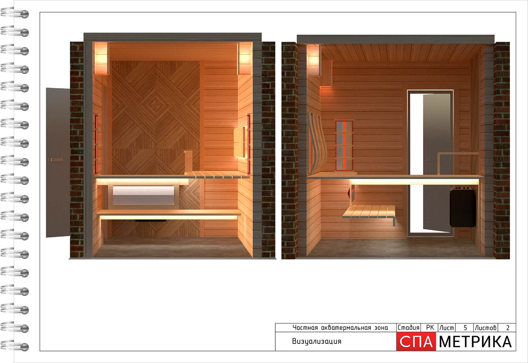 - Разработка дизайн-проекта парной, работа с заказчиком, подготовительные работы в помещении;